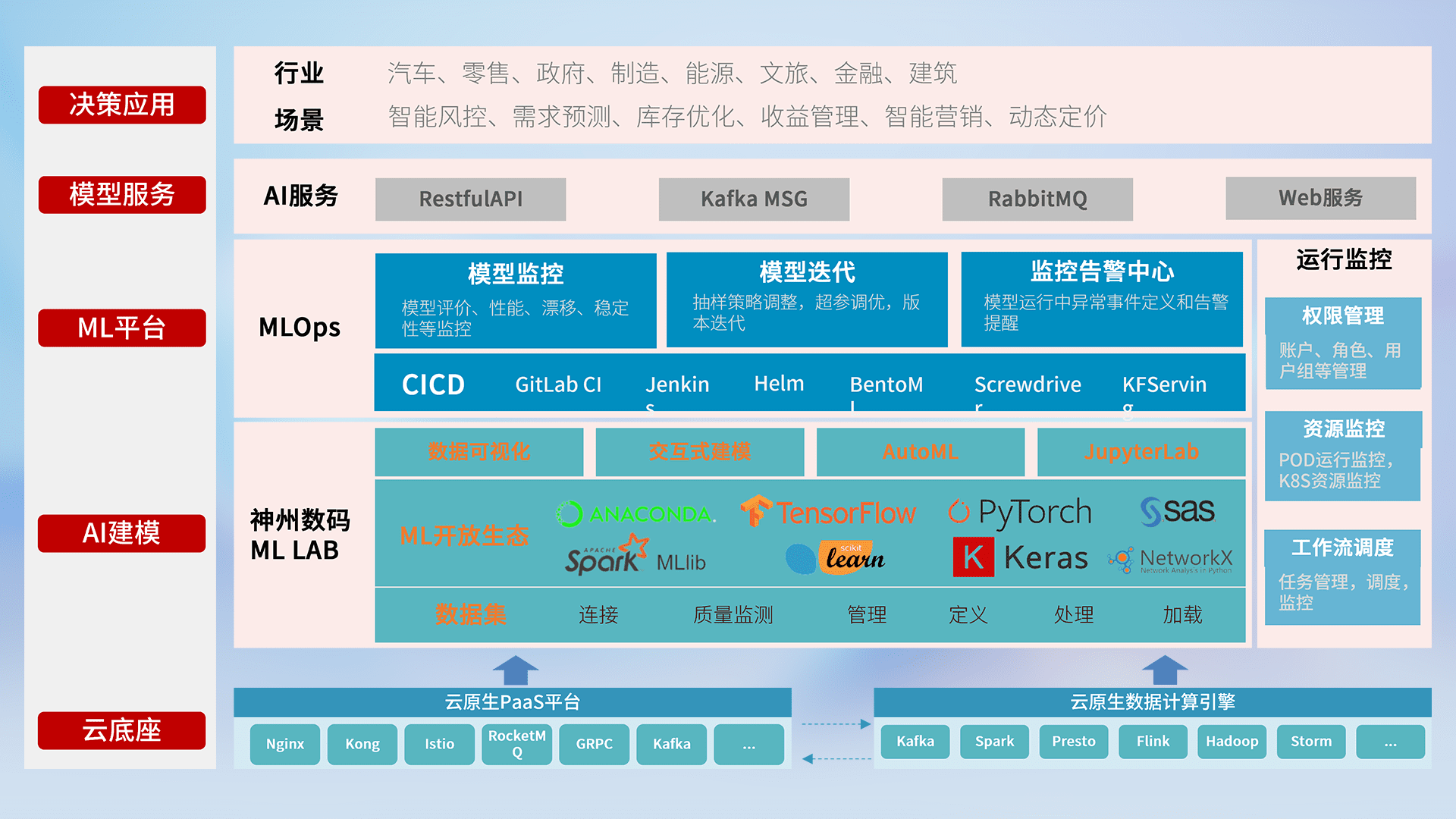 数据+模型双引擎驱动,,面向智能服务场景,,,快速灵活利用AI技术,,,,支持业务决策,,,助力企业智能化转型破局。。